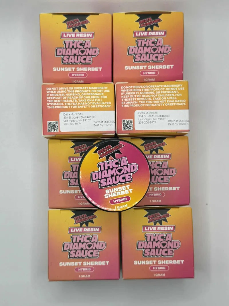 Delta Munchies THCA Diamond Sauce delivers a loud terp punch and a heavy, slow-building vibe. Each jar contains a full gram of THCA diamonds soaked in rich, aromatic sauce for a smooth, flavorful session that hits with depth.